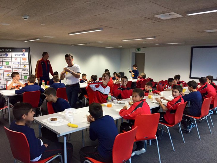 La journée continue avec le repas au Restaurant de la Coop et le match opposant les deux équipes M13 à la Maladière.