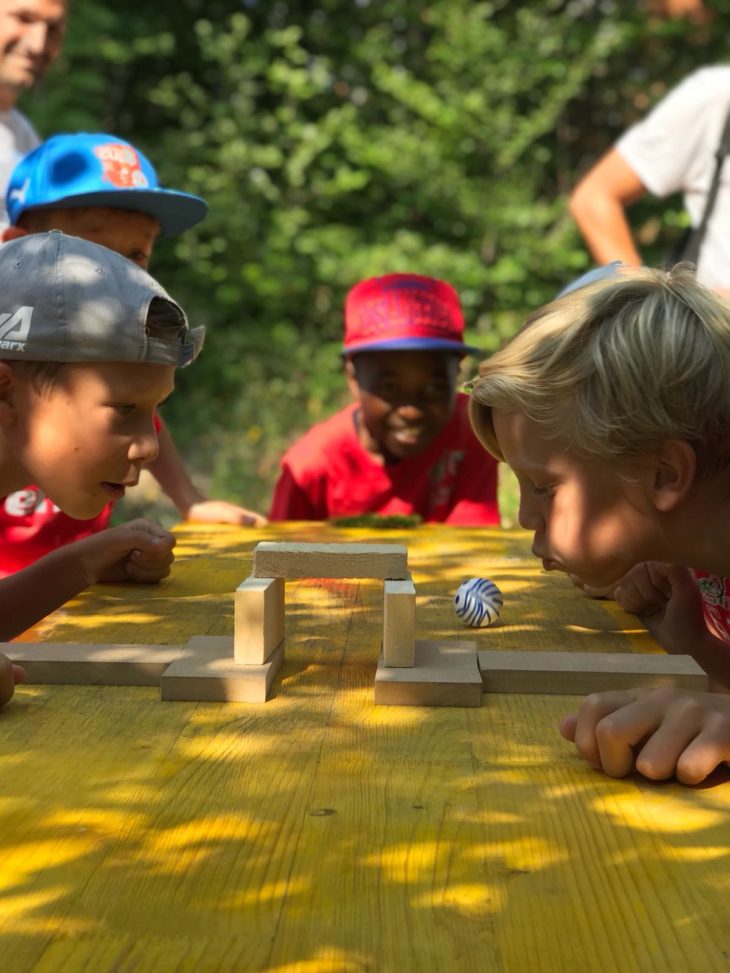 Les entraîneurs sont bien préparés à l’événement, en témoignent l’organisation et la mise en place des différents postes à côtés desquels les jeunes allaient passer. L’un d’entre eux consistait par exemple à ce que toute l’équipe se synchronise pour poser au sol un piquet. L’exercice permet de pousser tous les joueurs vers le même objectif. Autre jeu: s’arranger avec les outils à disposition pour qu’une balle effectue un parcours. Des plus jeunes aux M18, les constructions insolites ont montré – encore une fois – que l’esprit d’équipe était de mise et que l’on avait beaucoup à apprendre des autres.